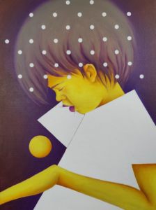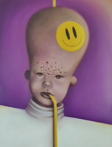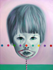 Face it! Schoonheid met een randje. Vijf kunstenaars leggen met portretten en ruimtelijk werk de lagen van identiteit en menselijkheid bloot. Vervreemdende beelden, persoonlijke verhalen en universele thema’s nodigen uit tot dialoog; met het werk, met de ander en met jezelf.