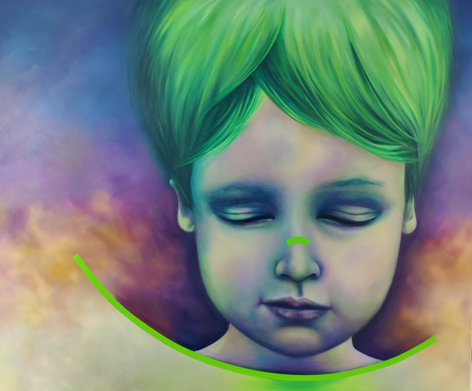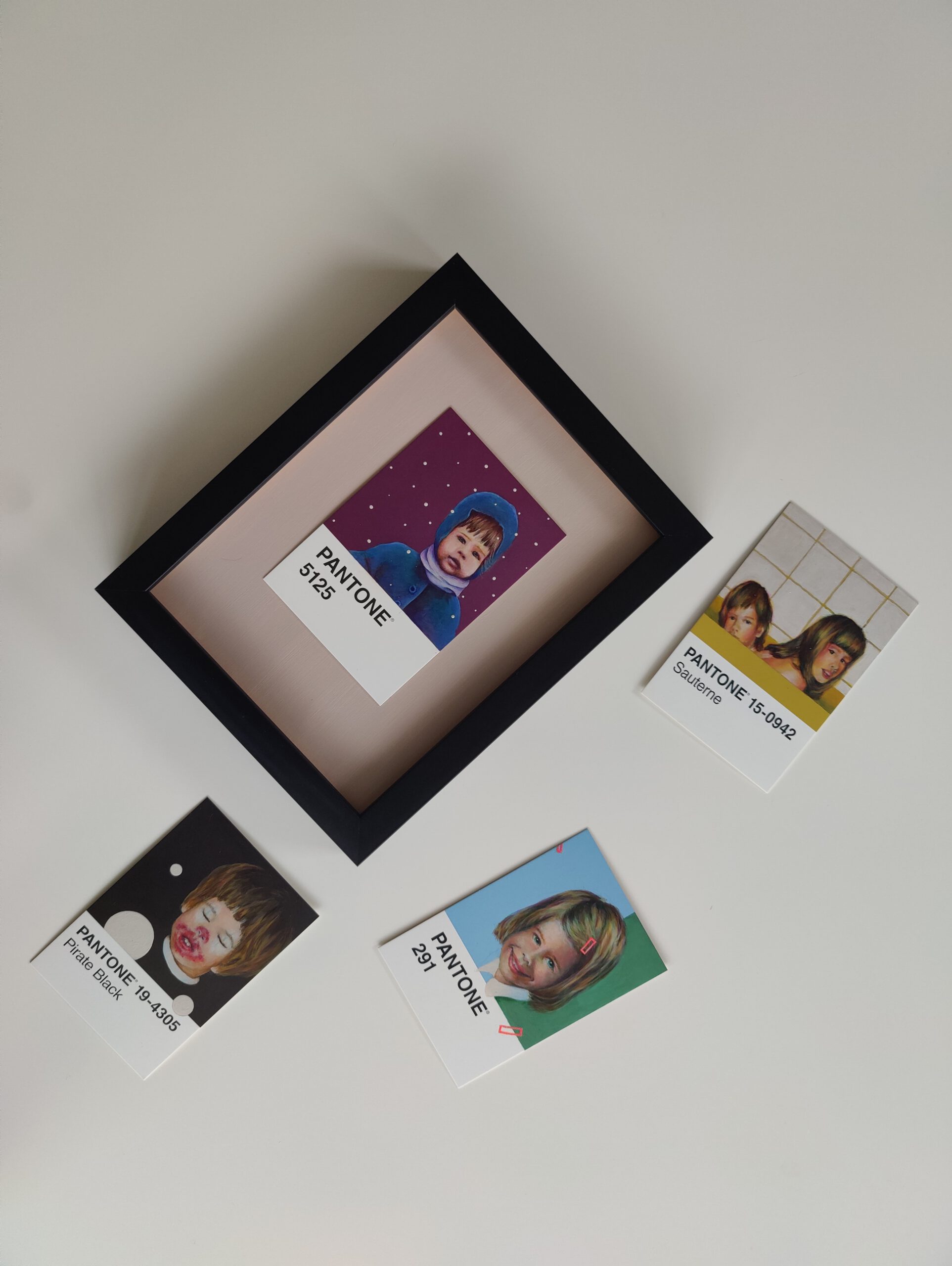 Met behulp van foto’s van vroeger onderzoek ik intuïtief de momentopname. Met grafische en surrealistische elementen verwerk ik mijn persoonlijke symboliek in portretten.